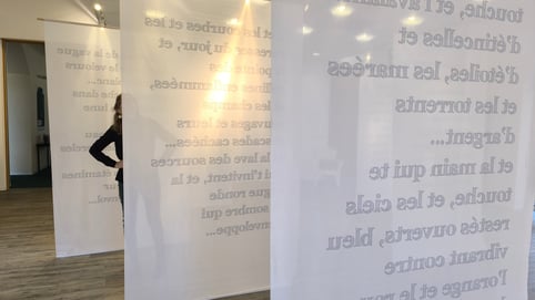 Mes installations poétiques vous proposent une immersion grand format dans mon univers, en intérieur ou hors-les-murs. Pour une expérience sensuelle et contemplative...