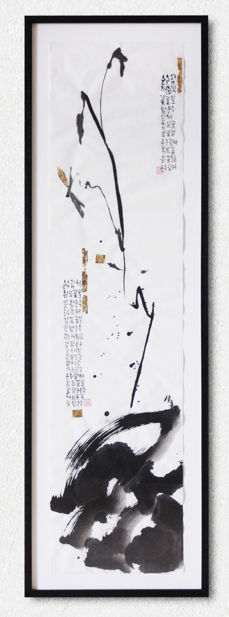 Encre de chine sur papier de riz et feuilles d'or,